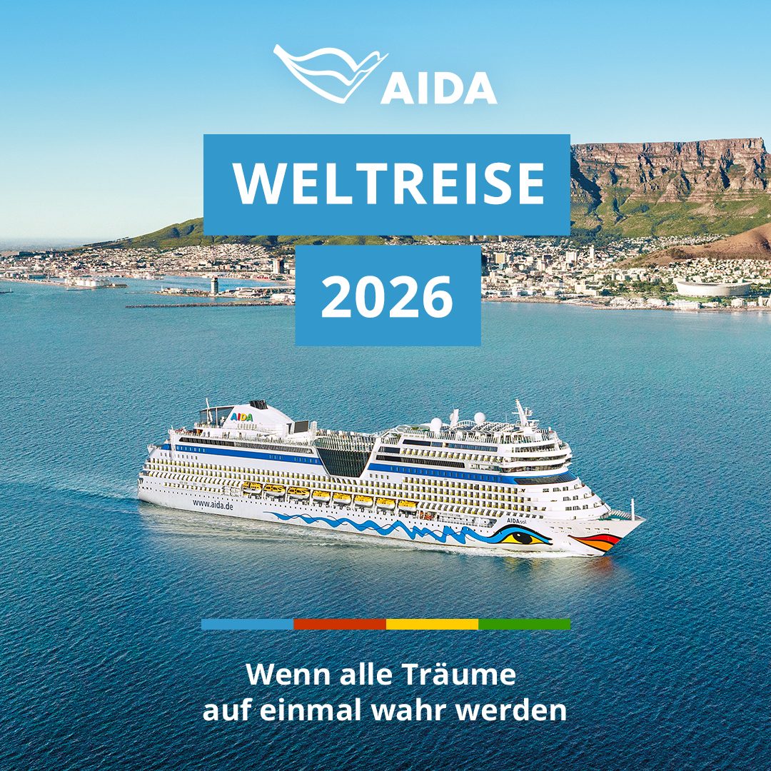 Ob Wellness und Sport, regionale Spezialitäten aus aller Welt oder heimische Kost, Shopping sowie unterhaltsame Abende im Theatrium – Sie genießen auf Ihrer Weltreise die pure Vielfalt sowie die vielen Vorzüge an Bord von AIDA. Ob Allein, in der Gruppe oder mit Gleichgesinnten: Sie entscheiden selbst wie Sie ihre Weltreise gestalten.